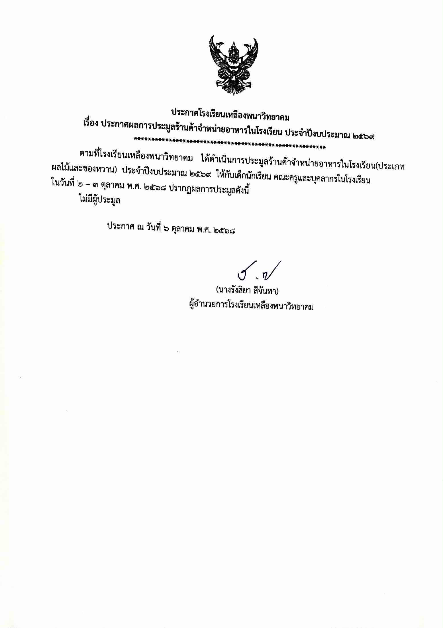 Read more26/09/2567 ประกาศโรงเรียนเหลือพนาวิทยาคม เรื่องการประมูลร้านค้าจำหน่ายอาหารในโรงเรียน ประจำปีงบประมาณ 2568